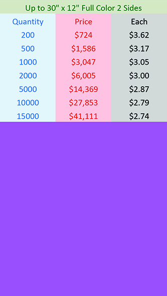 Tall signs printed 1 side: